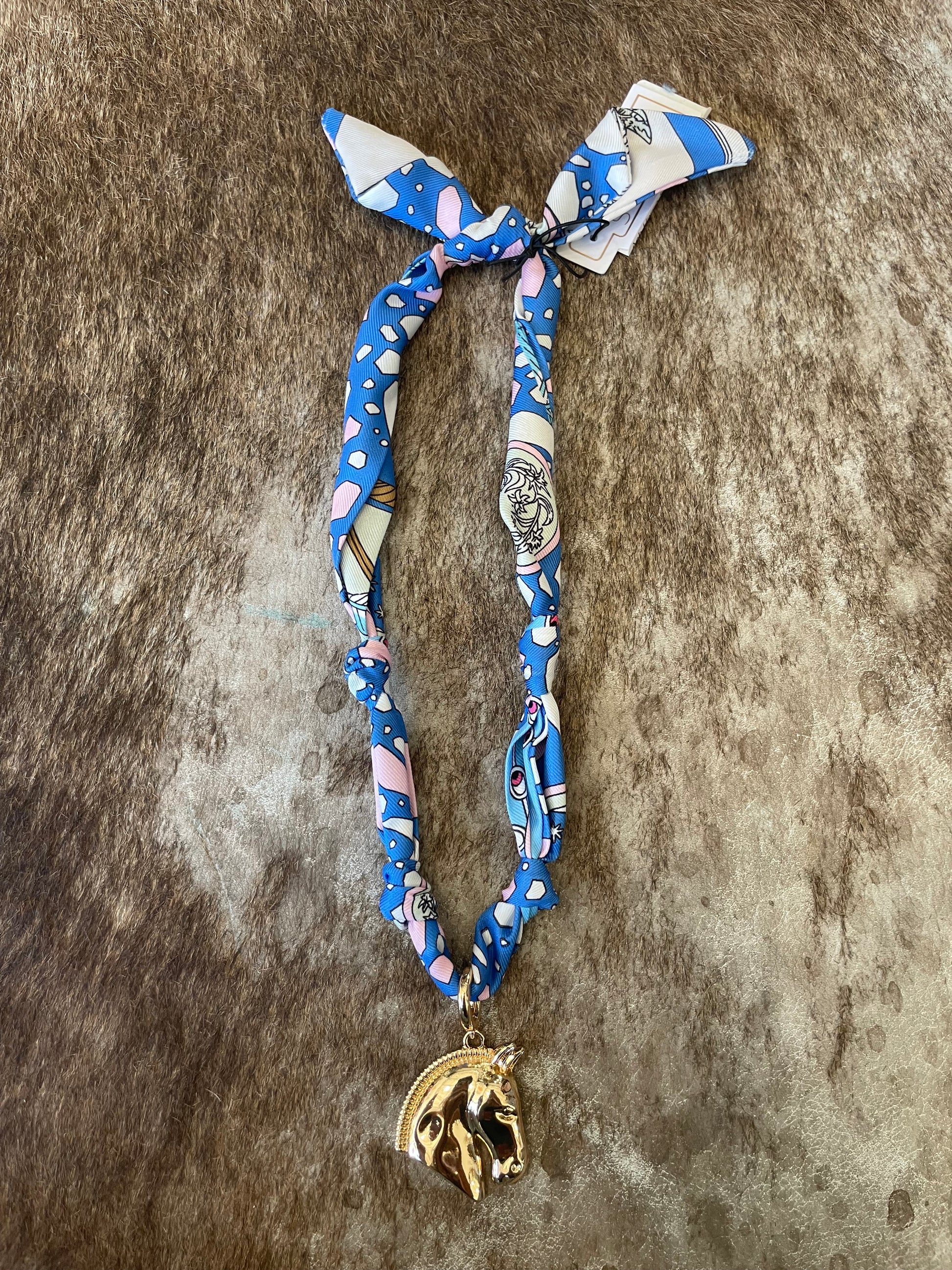 Horse charm scarf necklace.
