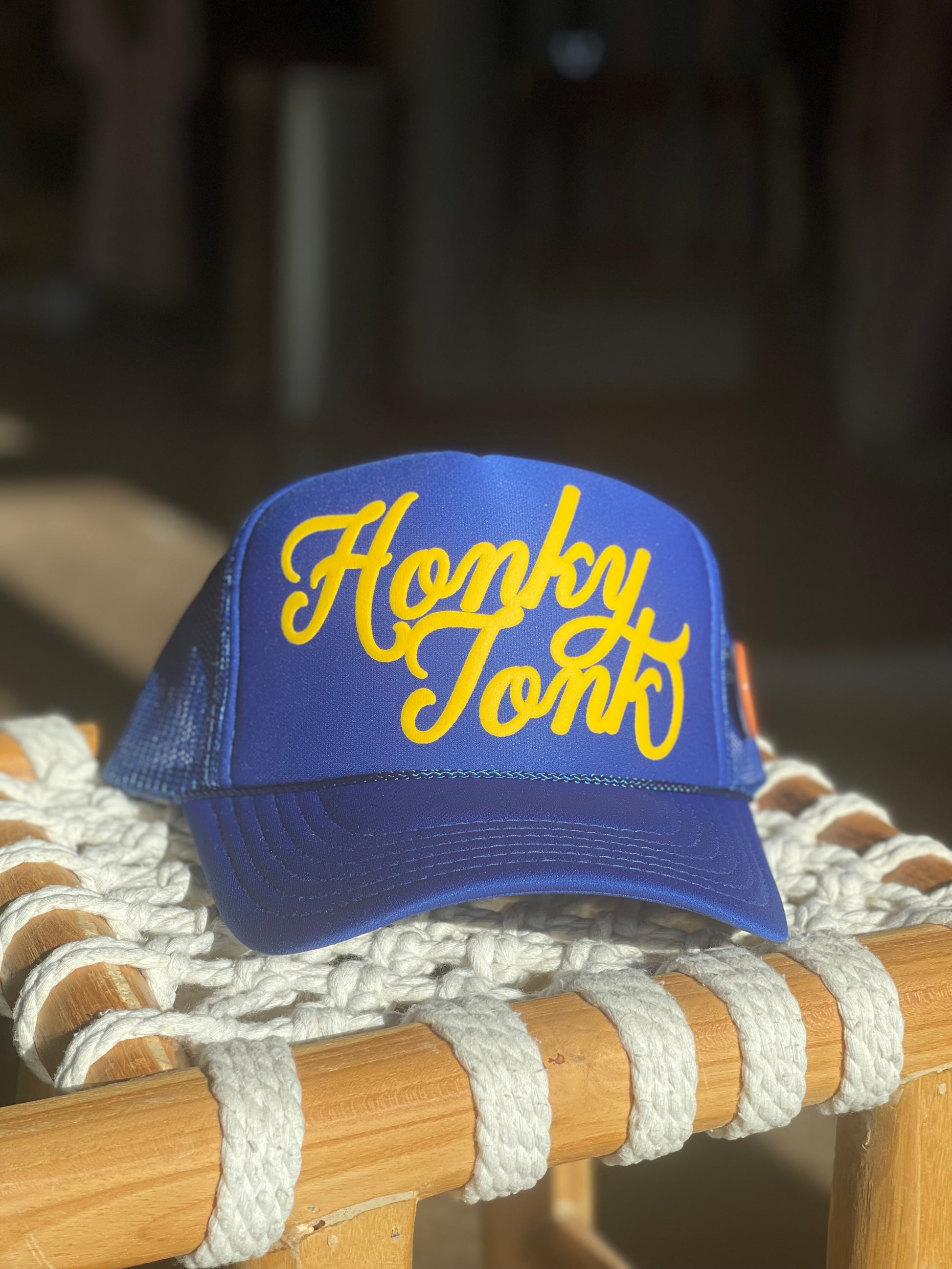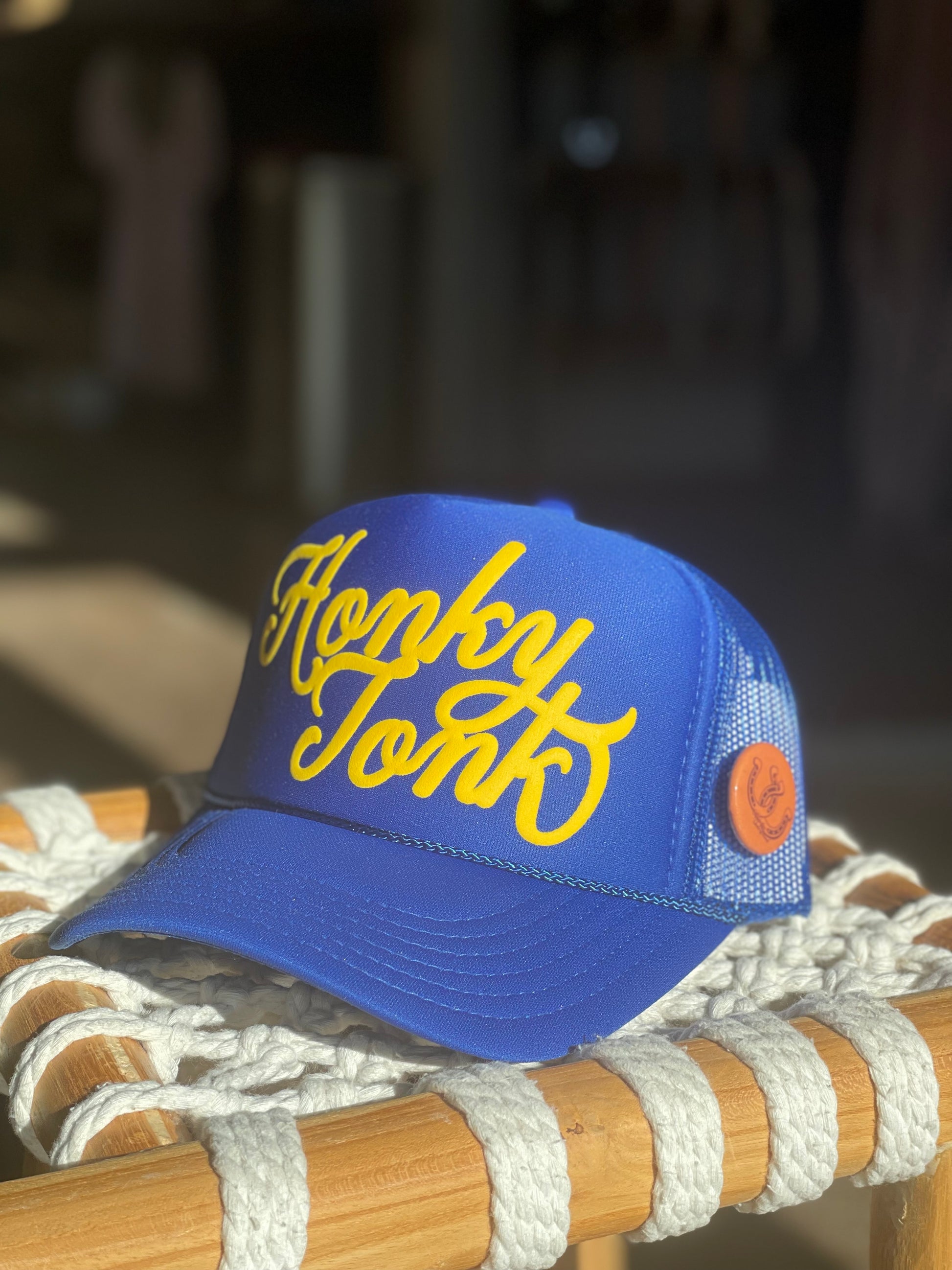 Bright royal blue cap featuring bold yellow text for a fun and lively look.