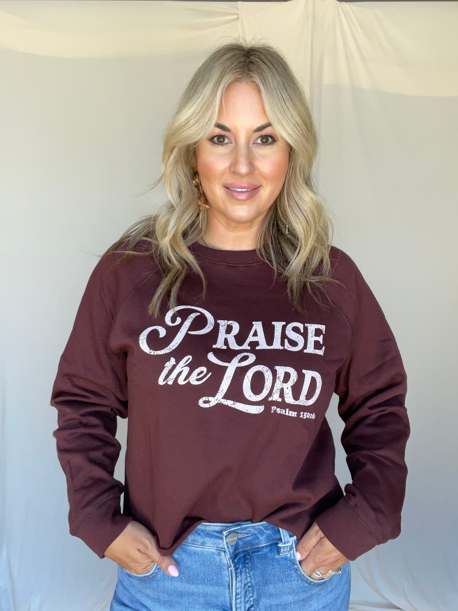 "Praise the Lord" graphic sweatshirt.