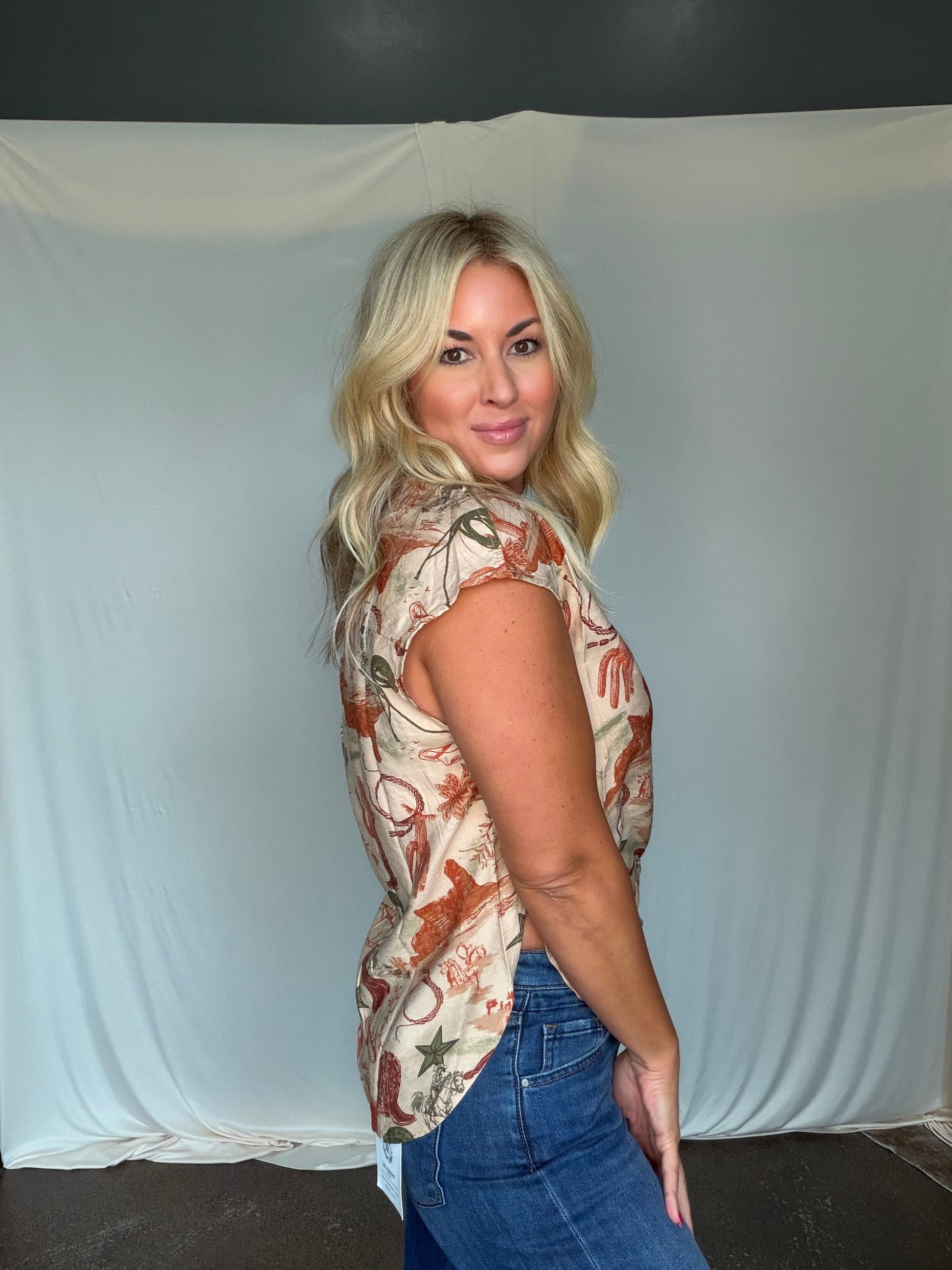 This sleeveless button-up muscle shirt features a western-inspired design, fit for a breathable and comfort wear.