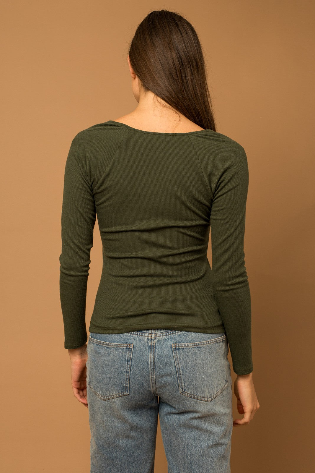 Long-sleeve ribbed top featuring an adorable square neckline that's totally on-trend. Perfect for layering or wearing solo.