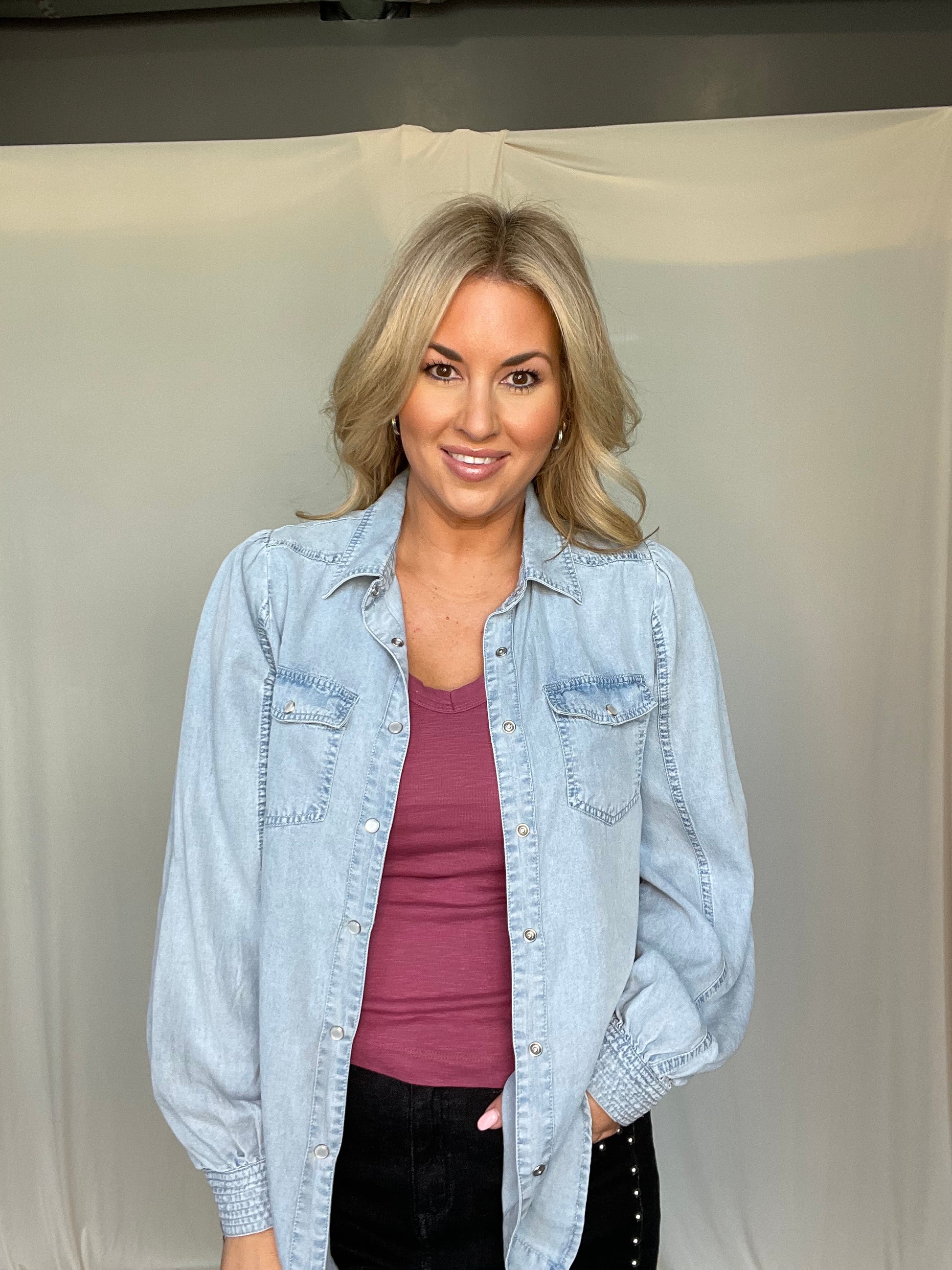 Tencel denim button down top.