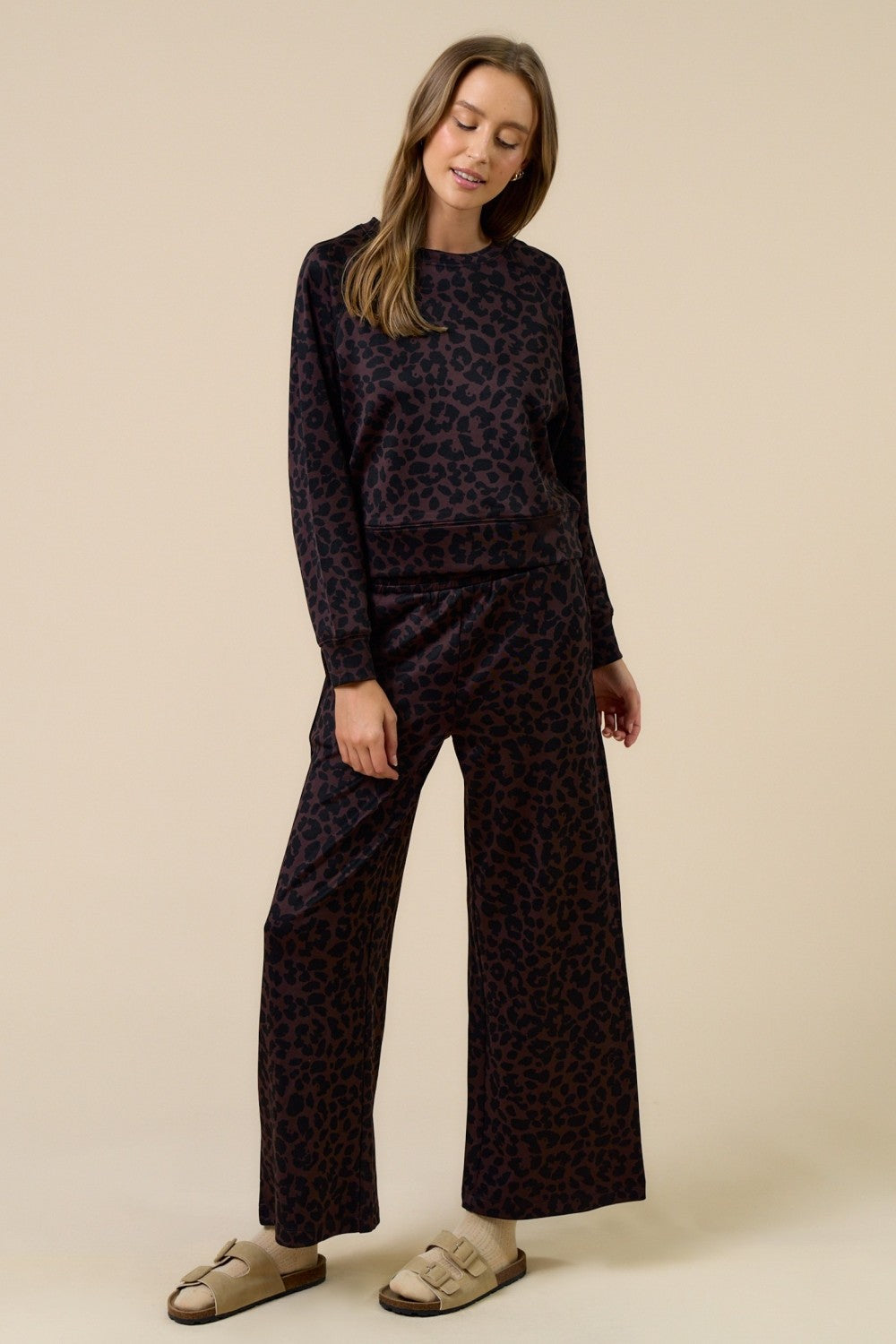 Unleash your wild side with this leopard print sweatshirt and pants duo that transforms lazy days into fashion moments. Soft enough for all-day comfort, bold enough to turn heads whether you're relaxing at home or hitting the streets. This set proves loungewear doesn't have to be boring—pair cozy vibes with undeniable style for a look that's effortlessly you.
