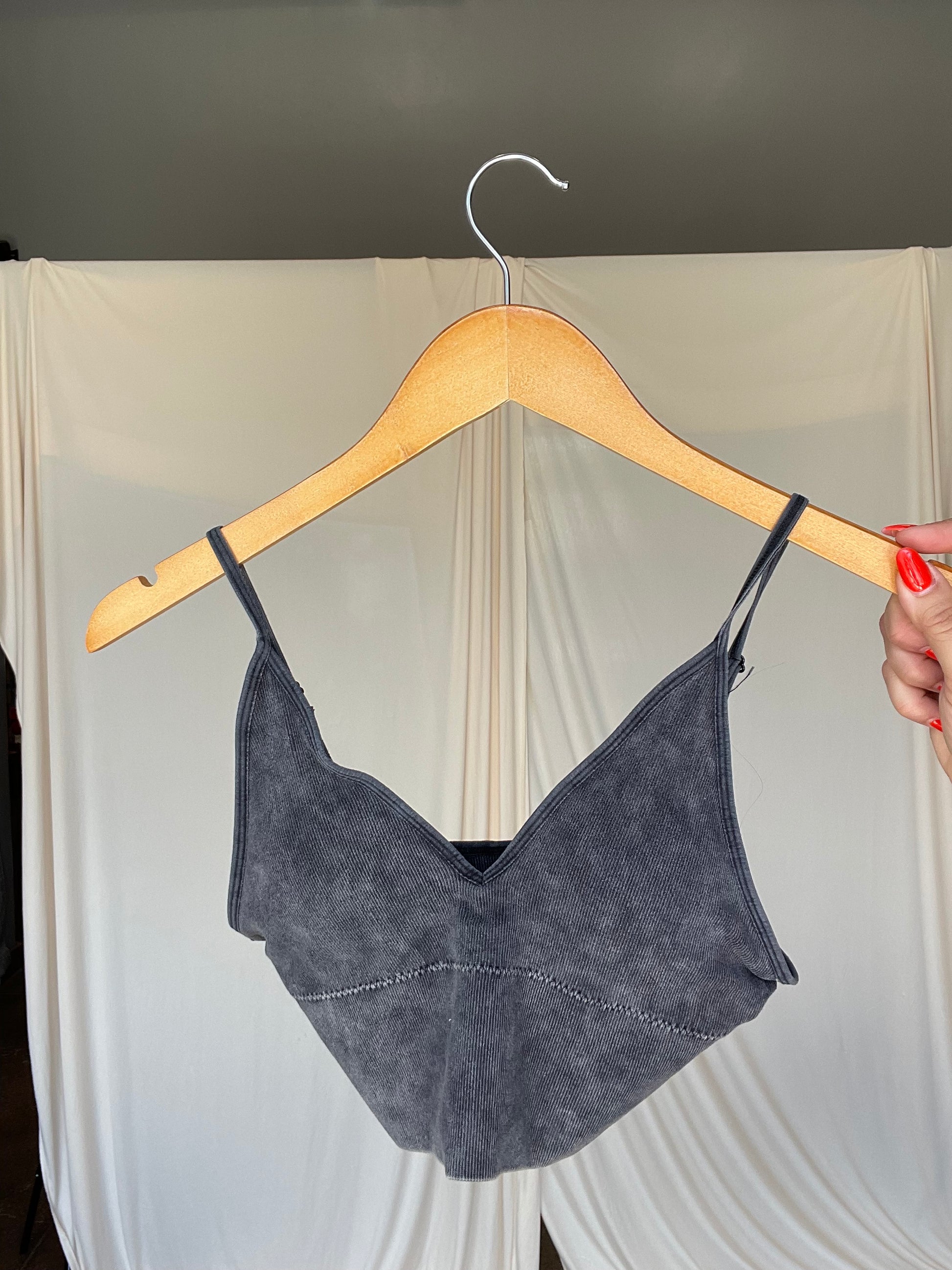 This ribbed bralette is padded and seamlessly washed - perfect for your everyday wear!