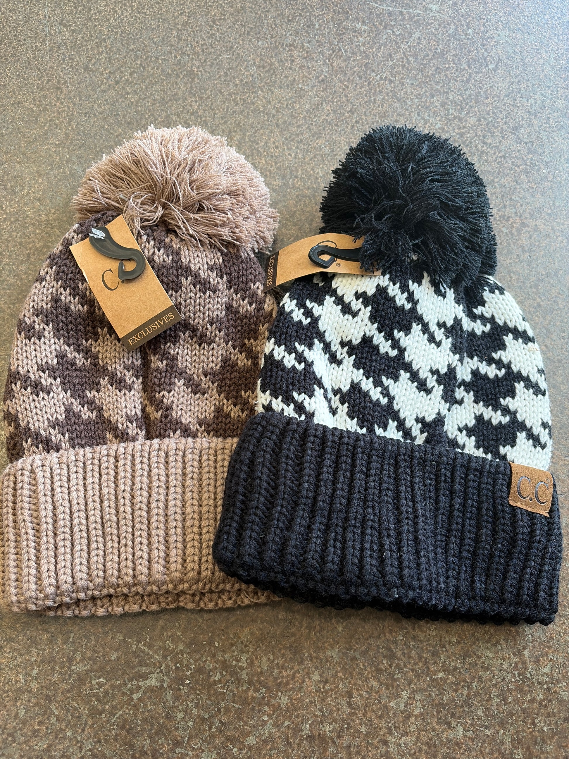 Houndstooth beanie.